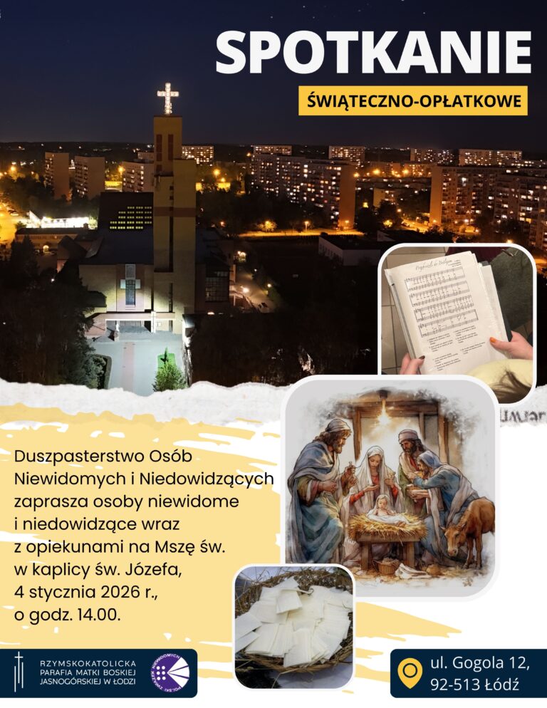 Duszpasterstwo Osób Niewidomych i Niedowidzących zaprasza osoby niewidome i niedowidzące wraz z opiekunami na Mszę św. 4 stycznia 2026 r.,