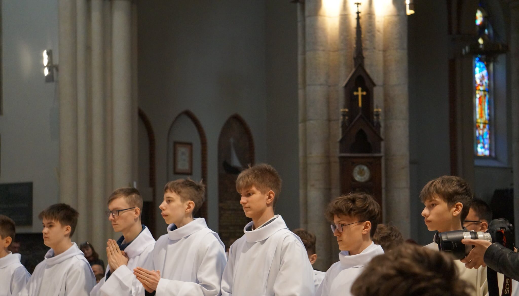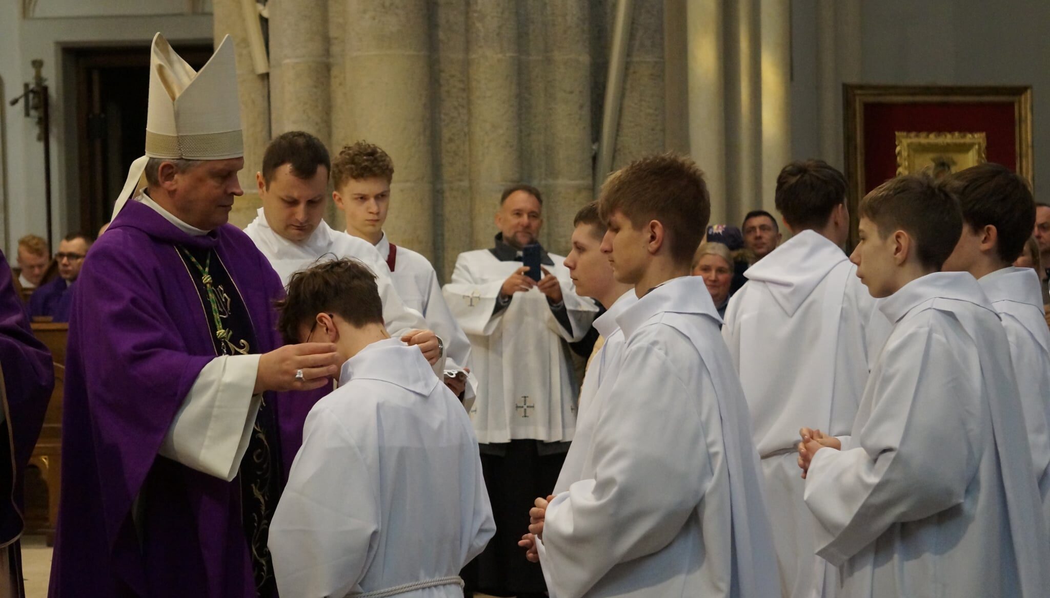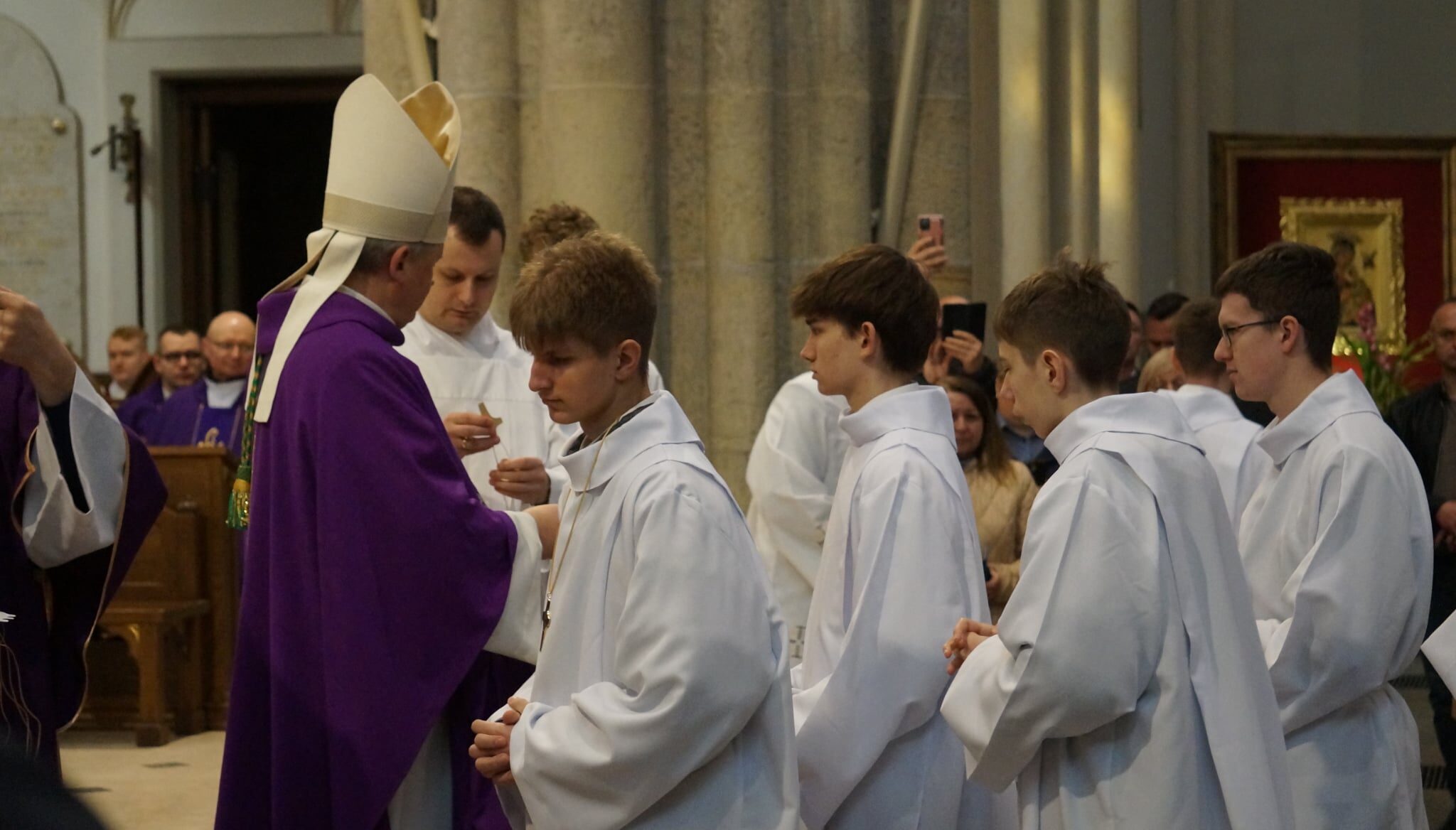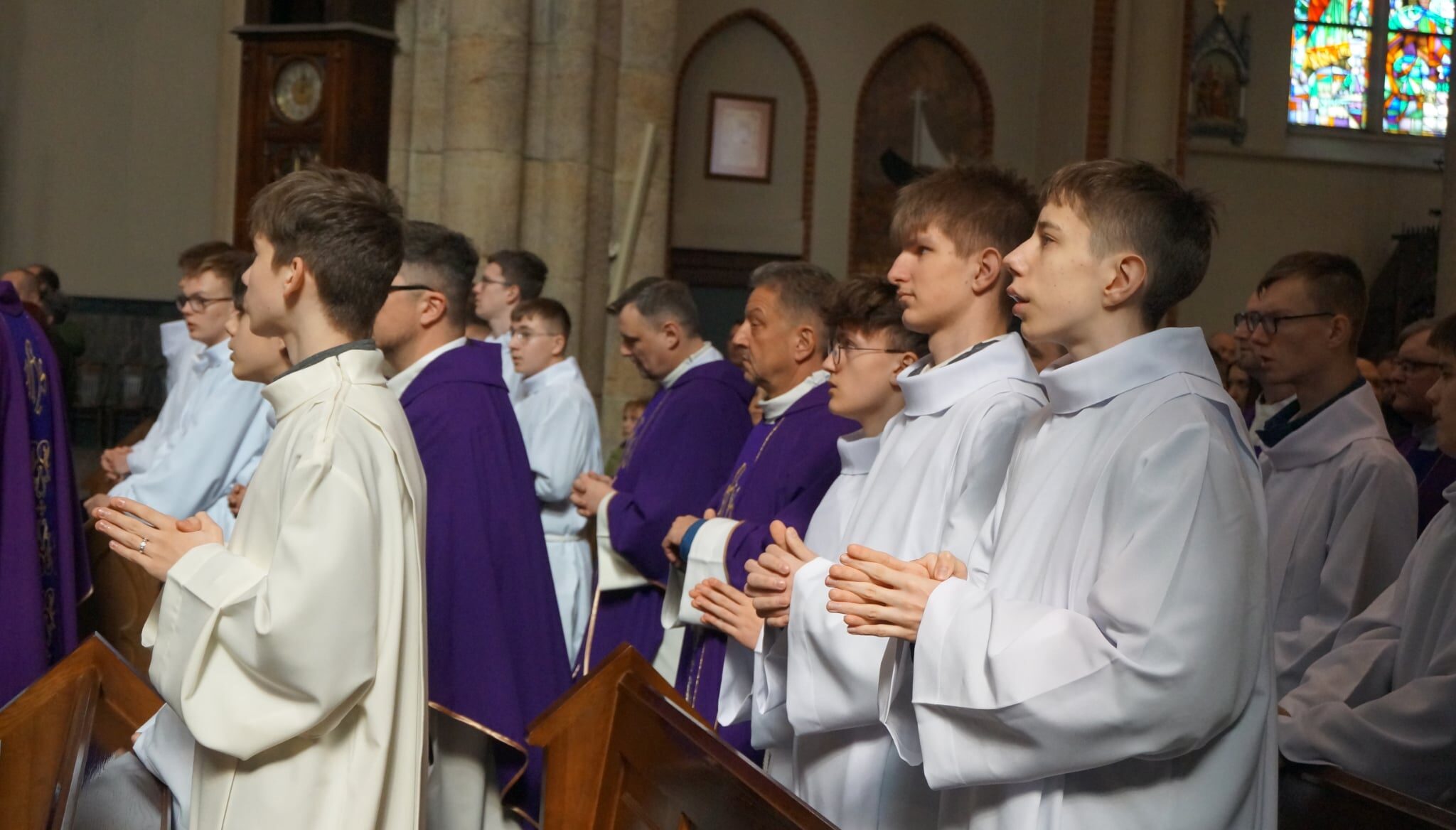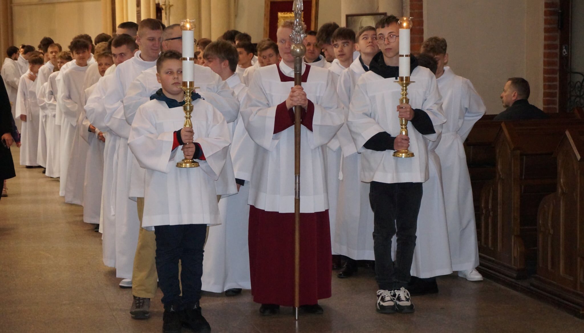 W dniu dzisiejszym w Łódzkiej Katedrze miała miejsce Msza św. podczas której zostało pobłogosławionych ponad 100 nowych lektorów w naszej diecezji. W ich gronie znalazło się dwóch ministrantów z naszej wspólnoty parafialnej: Krzysztof Karpiński i Piotr Lewandowski. Eucharystii przewodniczył ksiądz biskup Zbigniew Wołkowicz, który homilię skierował do przyszłych lektorów. Podjął w niej temat duchowości lektora, zwrócił również uwagę na to, że ludzie są jedynie narzędziem w rękach Boga w procesie przekazywania Bożego Słowa. „Potrzebujemy kontaktu ze Słowem, by Pan Jezus przez nas mógł przemawiać!” – powiedział biskup Wołkowicz do lektorów.