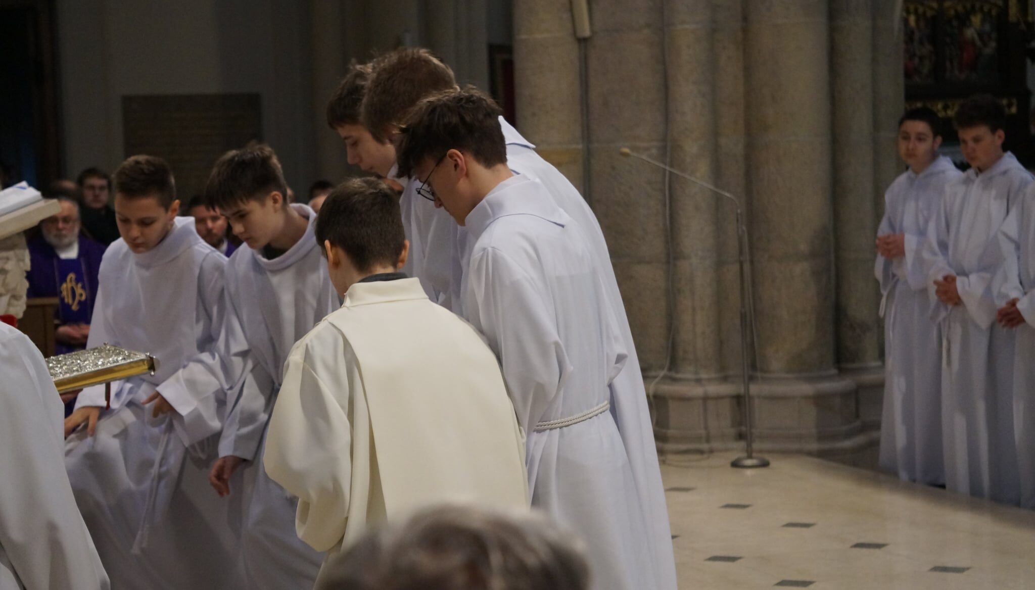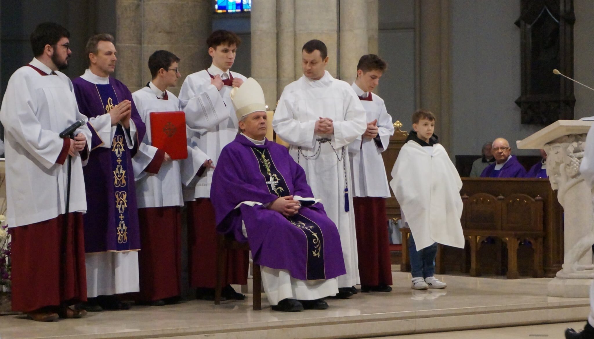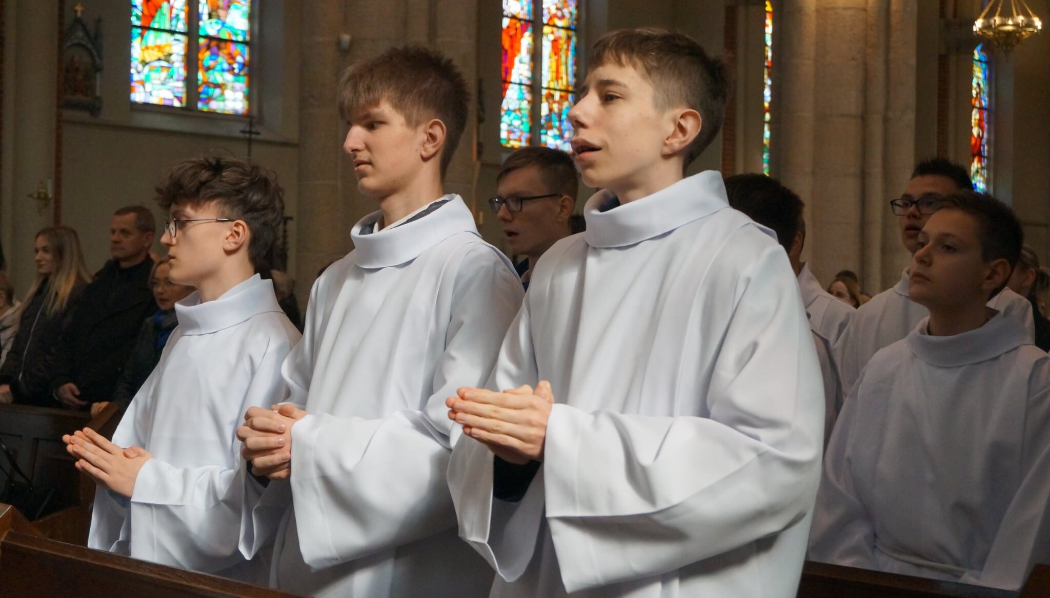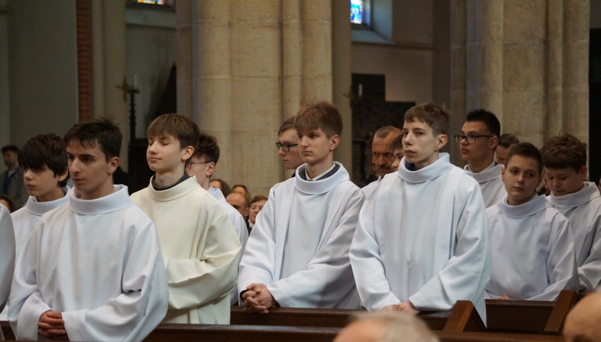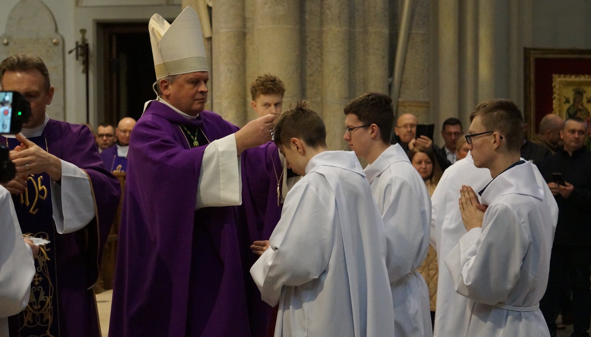 W dniu dzisiejszym w Łódzkiej Katedrze miała miejsce Msza św. podczas której zostało pobłogosławionych ponad 100 nowych lektorów w naszej diecezji. W ich gronie znalazło się dwóch ministrantów z naszej wspólnoty parafialnej: Krzysztof Karpiński i Piotr Lewandowski. Eucharystii przewodniczył ksiądz biskup Zbigniew Wołkowicz, który homilię skierował do przyszłych lektorów. Podjął w niej temat duchowości lektora, zwrócił również uwagę na to, że ludzie są jedynie narzędziem w rękach Boga w procesie przekazywania Bożego Słowa. „Potrzebujemy kontaktu ze Słowem, by Pan Jezus przez nas mógł przemawiać!” – powiedział biskup Wołkowicz do lektorów.