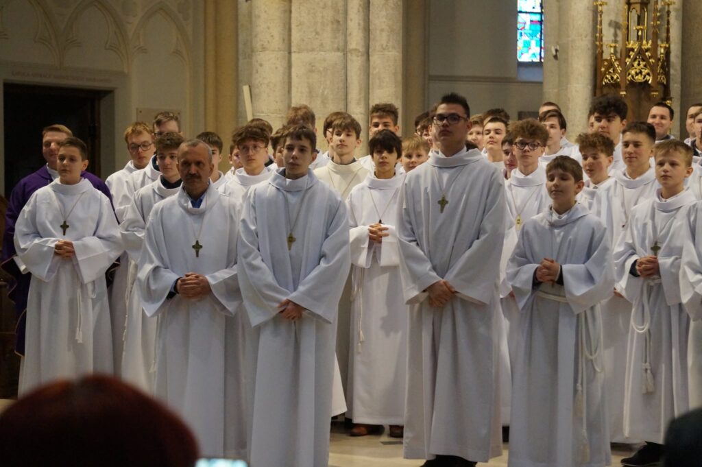 W dniu dzisiejszym w Łódzkiej Katedrze miała miejsce Msza św. podczas której zostało pobłogosławionych ponad 100 nowych lektorów w naszej diecezji. W ich gronie znalazło się dwóch ministrantów z naszej wspólnoty parafialnej: Krzysztof Karpiński i Piotr Lewandowski. Eucharystii przewodniczył ksiądz biskup Zbigniew Wołkowicz, który homilię skierował do przyszłych lektorów. Podjął w niej temat duchowości lektora, zwrócił również uwagę na to, że ludzie są jedynie narzędziem w rękach Boga w procesie przekazywania Bożego Słowa. „Potrzebujemy kontaktu ze Słowem, by Pan Jezus przez nas mógł przemawiać!” – powiedział biskup Wołkowicz do lektorów.